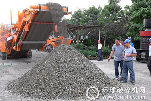 “鱷魚”系列移動(dòng)粉碎站現(xiàn)場破碎建筑垃圾,塊大堅(jiān)硬的建筑垃圾經(jīng)過“鱷魚”破碎立馬變成小石子,并且在破碎的過程中明顯看出出料很順,在場人員紛紛拿出手機(jī)拍照,不斷贊嘆“鱷魚”系列建筑垃圾破碎設(shè)備配置很先進(jìn),性能比較強(qiáng)大。