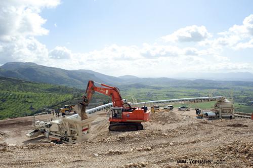 顎式破碎機的實際產(chǎn)能為1,200噸/小時。但由于坡度原因,在增大給料時我們固定式皮帶會出現(xiàn)過熱現(xiàn)象。因此,我們將產(chǎn)量限制在800噸/小時。同時,我們的固定式下行