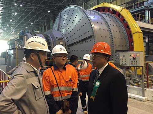 在額爾登特銅礦項目擴產(chǎn)總指揮蓋勒蓋先生陪同下,額勒貝格道爾吉總統(tǒng)與參會嘉賓一起到磨浮現(xiàn)場進行了參觀。在車間內(nèi),額勒貝格道爾吉總統(tǒng)看到公司承制的半自磨機和球磨機正在運行,隨即詢問蓋勒蓋先生,“這兩臺大型磨機是哪個國家制造的設備?”蓋勒蓋先生說:“這是來自中國的設備,是由中信重工提供的,中信重工的大型磨機全世界都在使用,在澳洲、南美、非洲都有廣泛應用,客戶反映均運行良好。”額勒貝格道爾吉總統(tǒng)表示:“很好,很好!”