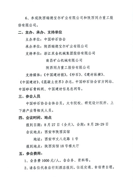 定于2015年8月27日至29在西安召開中國砂石協(xié)會第七屆會員代表大會暨砂石骨料行業(yè)發(fā)展論壇,有關事項通知如下。