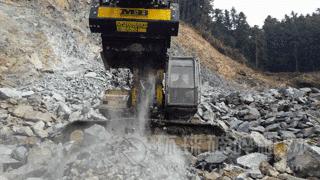 粉碎鏟斗,適用于20噸以上的挖掘機(jī),滿載重量(鏟斗+連接板+斗容量)約為5.5噸。可以粉碎直徑約不超過40厘米的高硬度或中等硬度石料。
