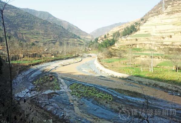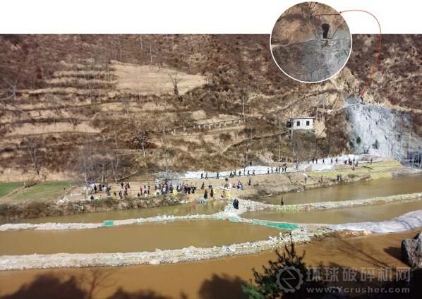 甘肅銻污染事故處置現(xiàn)場,泄漏的尾礦砂就從圖中上方的涵洞流出,進入太石河,再從太石河流入西漢水,在陜西略陽匯入嘉陵江,再進入四川廣元。 邵文杰/攝