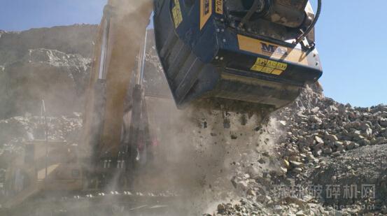 " 僅一臺(tái)MB-S18 篩分鏟斗,工作10個(gè)小時(shí),就可以篩分出約400 立方米符合規(guī)格要求的材料 (尺寸在0?4厘米),篩分后約500立方米需再加工的材料,隨后將經(jīng)由粉碎鏟斗進(jìn)行粉碎",Amjad Mrad 先生說(shuō)。