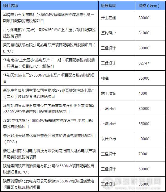 2016年2月近一個(gè)月國內(nèi)擬建和在建的脫硫脫硝項(xiàng)目(部分)
