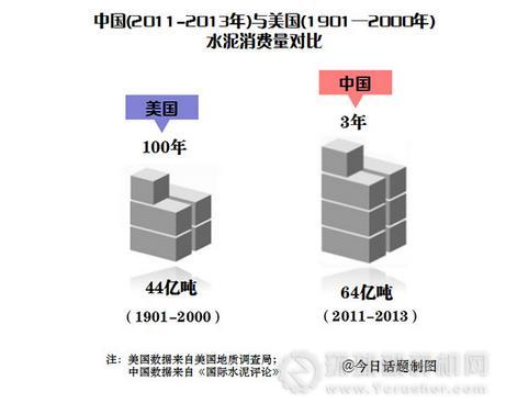 比爾·蓋茨曾經(jīng)出人意料地在個(gè)人博客上發(fā)布了中美水泥消耗量的對(duì)比圖,圖表顯示,2011年至2013年期間,中國(guó)消耗了66億噸水泥,超過(guò)美國(guó)在整個(gè)二十世紀(jì)的消耗量。蓋茨的數(shù)據(jù)靠譜嗎?