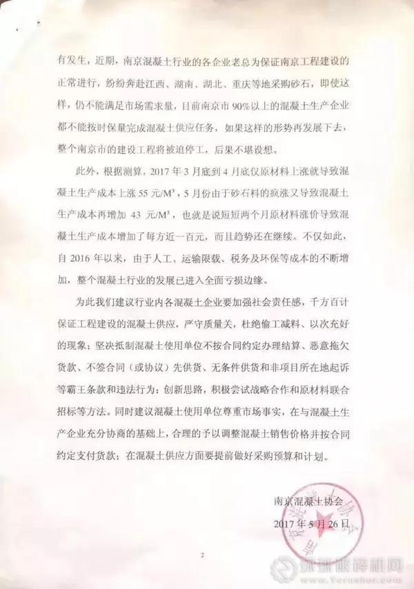 自春節(jié)后,長江中下游環(huán)境治理,各省市政府對(duì)砂石料場治理力度加大,多個(gè)地區(qū)砂石料場全面關(guān)停,從而造成整個(gè)南京市預(yù)拌混凝土行業(yè)陷入“斷糧”困境。價(jià)格更是急劇上升,僅砂石料這兩項(xiàng)成本從2015年的85元每方漲到現(xiàn)在的170元每方,漲幅高達(dá)200%。到幾年5月份已經(jīng)發(fā)展到現(xiàn)金采購都無法買到砂石,預(yù)付幾百萬到上游的石料開采企業(yè)半個(gè)月都排不上船的情況時(shí)有發(fā)生。
