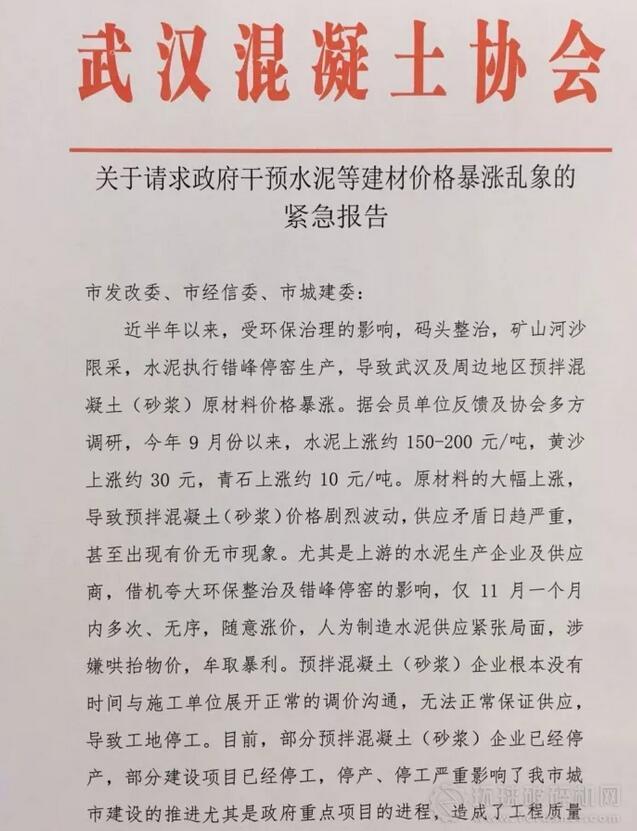 原材料的大幅上漲,導(dǎo)致預(yù)拌混凝土(砂漿)價格劇烈波動,供應(yīng)矛盾日趨嚴(yán)重,甚至出現(xiàn)有價無市現(xiàn)象。尤其是上游的水泥生產(chǎn)企業(yè)及供應(yīng)商,借機(jī)夸大環(huán)保整治及錯峰停窯的影響,僅11月一個月內(nèi)多次、無序,隨意漲價,人為制造水泥供應(yīng)緊張局面,涉嫌哄抬物價,牟取暴利。預(yù)拌混凝土(砂漿)企業(yè)根本沒有時間與施工單位展開正常的調(diào)價溝通,無法正常保證供應(yīng),導(dǎo)致工地停工。