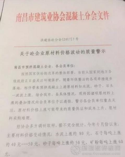 南昌協(xié)會此次發(fā)文希望各砼企依據(jù)南昌市造價信息簽訂合同,相互間加強溝通,自覺自律,禁止使用低劣原材料!拒絕低價競爭!