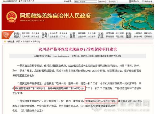 汶川縣嚴(yán)格環(huán)保要求規(guī)范砂石企業(yè)管理