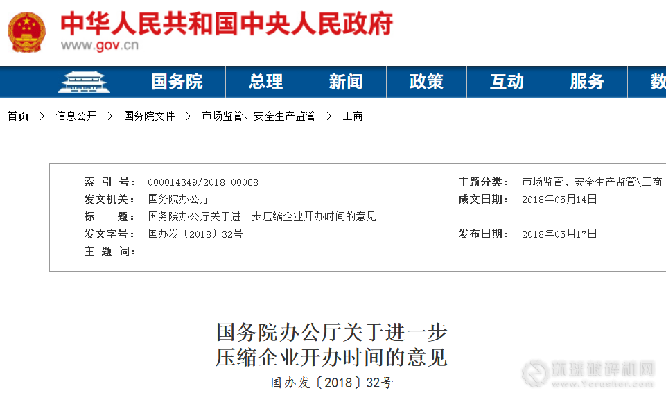 5月17日,國(guó)務(wù)院辦公廳發(fā)布《關(guān)于進(jìn)一步壓縮企業(yè)開辦時(shí)間的意見》(國(guó)辦發(fā)〔2018〕32號(hào)),將進(jìn)一步簡(jiǎn)化企業(yè)從設(shè)立到具備一般性經(jīng)營(yíng)條件所必須辦理的環(huán)節(jié),壓縮辦理時(shí)間。2018年年底前,各直轄市、計(jì)劃單列市、副省級(jí)城市和省會(huì)城市要將企業(yè)開辦時(shí)間壓縮一半以上,由目前平均20天減至8.5天(指工作日,下同)以內(nèi),其他地方也要積極壓減企業(yè)開辦時(shí)間,2019年上半年在全國(guó)實(shí)現(xiàn)上述目標(biāo)。