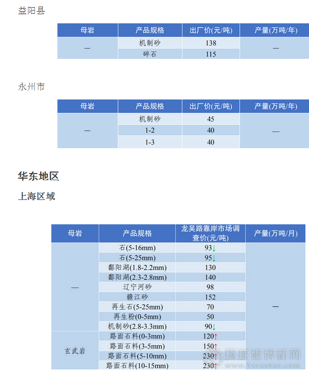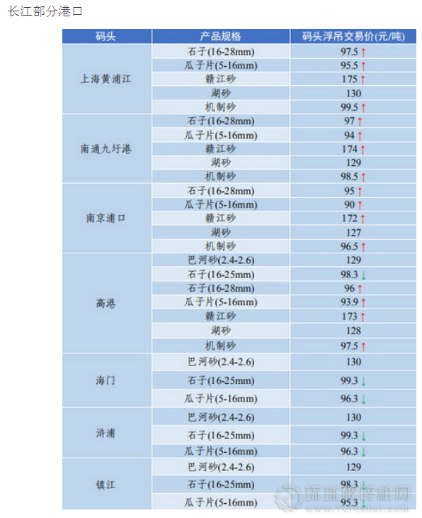 長三角地區(qū)優(yōu)質(zhì)砂石普遍小幅上漲,如玄武巖路面石料、贛江砂等。