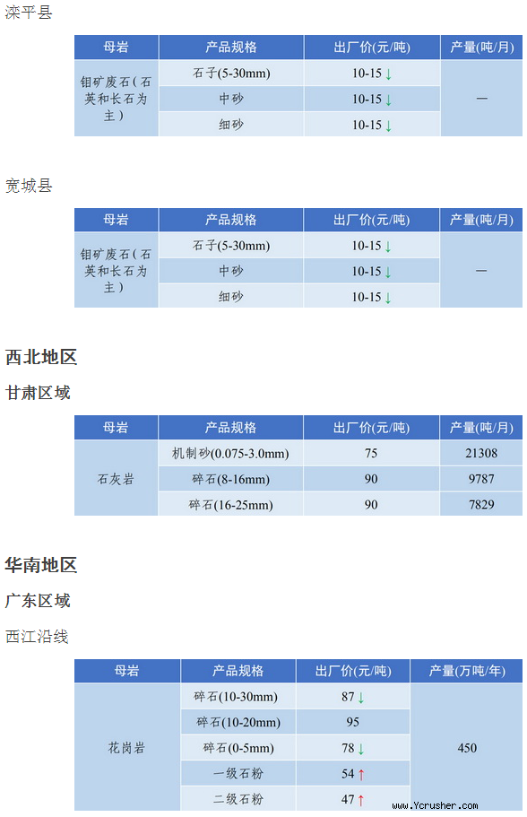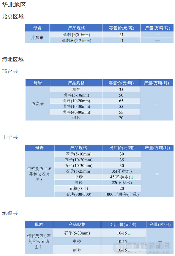 河北承德地區(qū)機(jī)制砂石價(jià)格略有下降;