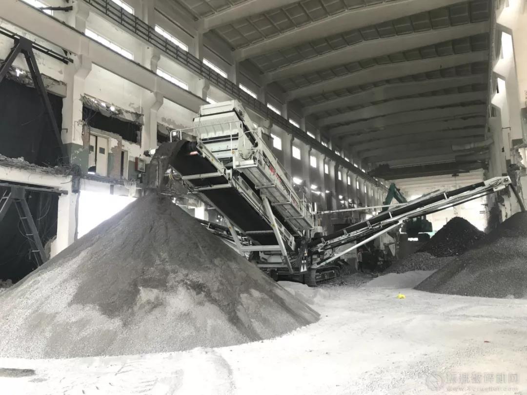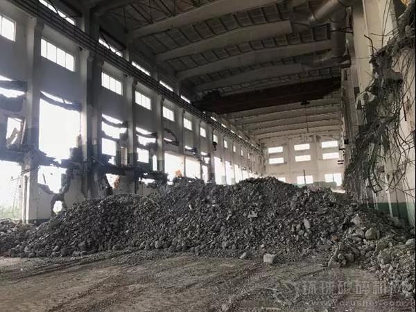 項(xiàng)目背景:該項(xiàng)目位于浙江省杭州市區(qū)某廢舊造紙廠拆除項(xiàng)目,當(dāng)?shù)赜兄鴩?yán)格的環(huán)保要求,所以生產(chǎn)線布置在廢棄廠房內(nèi),廠房不僅擁有足夠的生產(chǎn)空間,還能起到很好的降噪、降塵作用。所產(chǎn)生的建筑垃圾就地破碎篩分處理,變成再生砂石骨料。