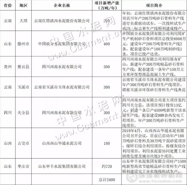 綜上來看,若上述水泥企業(yè)的砂石骨料生產(chǎn)線建設(shè)計劃在2019年全面推進,預(yù)計將有近10億噸砂石骨料沖擊市場。