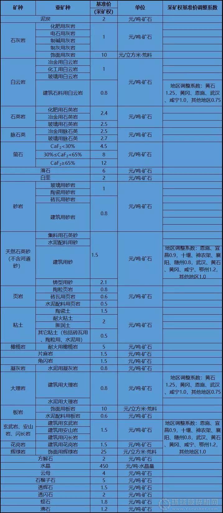 砂石礦種的礦業(yè)權(quán)出讓收益市場(chǎng)基準(zhǔn)價(jià)進(jìn)行規(guī)定,如建筑石料用白云巖,天然石英砂(不含河道砂)用作建筑用砂,建筑用玄武巖、安山巖、閃長(zhǎng)巖等,應(yīng)當(dāng)引起湖北地區(qū)相關(guān)企業(yè)和投資方的高度重視!