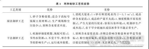 表1列出了兩種制砂工藝各自的優(yōu)劣勢,到底選擇濕法制砂還是干法制砂,取決于所處的地區(qū)和水資源情況、原料含水量情況,機制砂石粉含量、投資和成本考慮的具體要求,應依據自身生產情況綜合考慮選擇工藝。