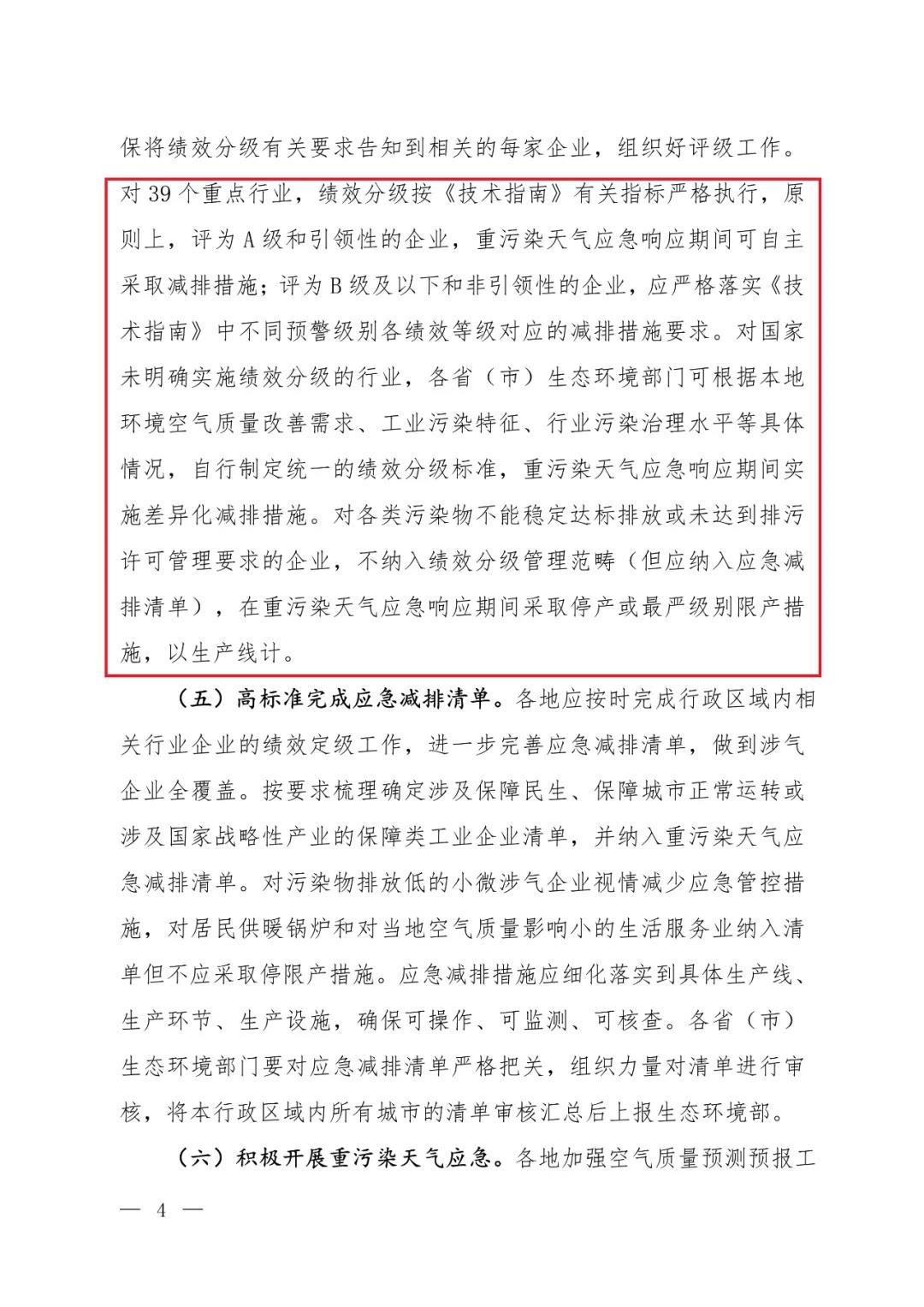 明確要求,對(duì)各類污染物不能穩(wěn)定達(dá)標(biāo)排放或未達(dá)到排污 許可管理要求的企業(yè),不納入績(jī)效分級(jí)管理范疇(但應(yīng)納入應(yīng)急減 排清單),在重污染天氣應(yīng)急響應(yīng)期間采取停產(chǎn)或最嚴(yán)級(jí)別限產(chǎn)措施,以生產(chǎn)線計(jì)。