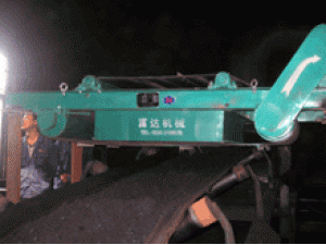 三、當(dāng)物料中含鐵較少時(shí)。宜選用人工除鐵式電磁除鐵器。可適當(dāng)降低懸掛高度,有利于出鐵。但采用人工除鐵的除鐵器,當(dāng)鐵桿一頭吸起并被緊緊吸住時(shí),另一頭如頂住輸送膠帶則容易發(fā)生膠帶縱向撕裂事故。