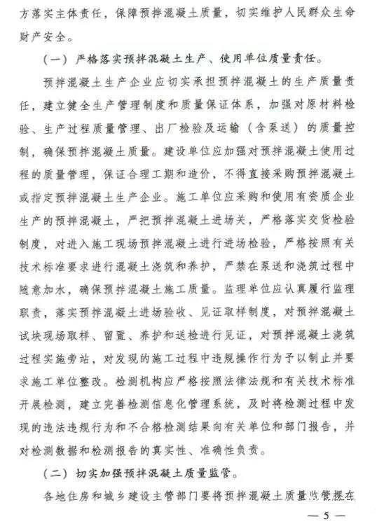 施工單位應(yīng)采購和使用有資質(zhì)企業(yè)生產(chǎn)的預(yù)拌混凝土,嚴(yán)把預(yù)拌混凝土進(jìn)場關(guān),嚴(yán)格落實(shí)交貨檢驗(yàn)制度,對(duì)進(jìn)入施工現(xiàn)場預(yù)拌混凝土進(jìn)行進(jìn)場檢驗(yàn),嚴(yán)格按照有關(guān)技術(shù)標(biāo)準(zhǔn)要求進(jìn)行混凝土澆筑和養(yǎng)護(hù),嚴(yán)禁在泵送和澆筑過程中隨意加水,確保預(yù)拌混凝土施工質(zhì)量。