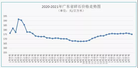 3月下旬全省碎石平均購進(jìn)價為每立方米175元,環(huán)比微降0.49%。其中,珠三角、粵西和粵北地區(qū)碎石分別為每立方米192元、136元和142元,環(huán)比分別下降0.41%、0.3%和1.03%;粵東地區(qū)碎石為每立方米199元,環(huán)比持平。3月下旬機(jī)制砂平均購進(jìn)價為每立方米158元,環(huán)比微降0.43%。