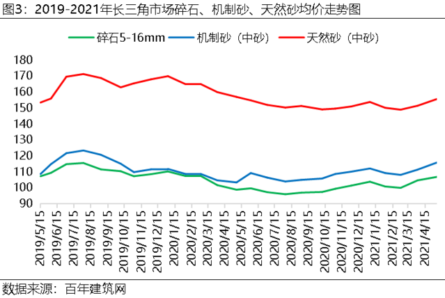 三、2019-2021年長(zhǎng)三角碎石、機(jī)制砂、天然砂價(jià)格走勢(shì)分析