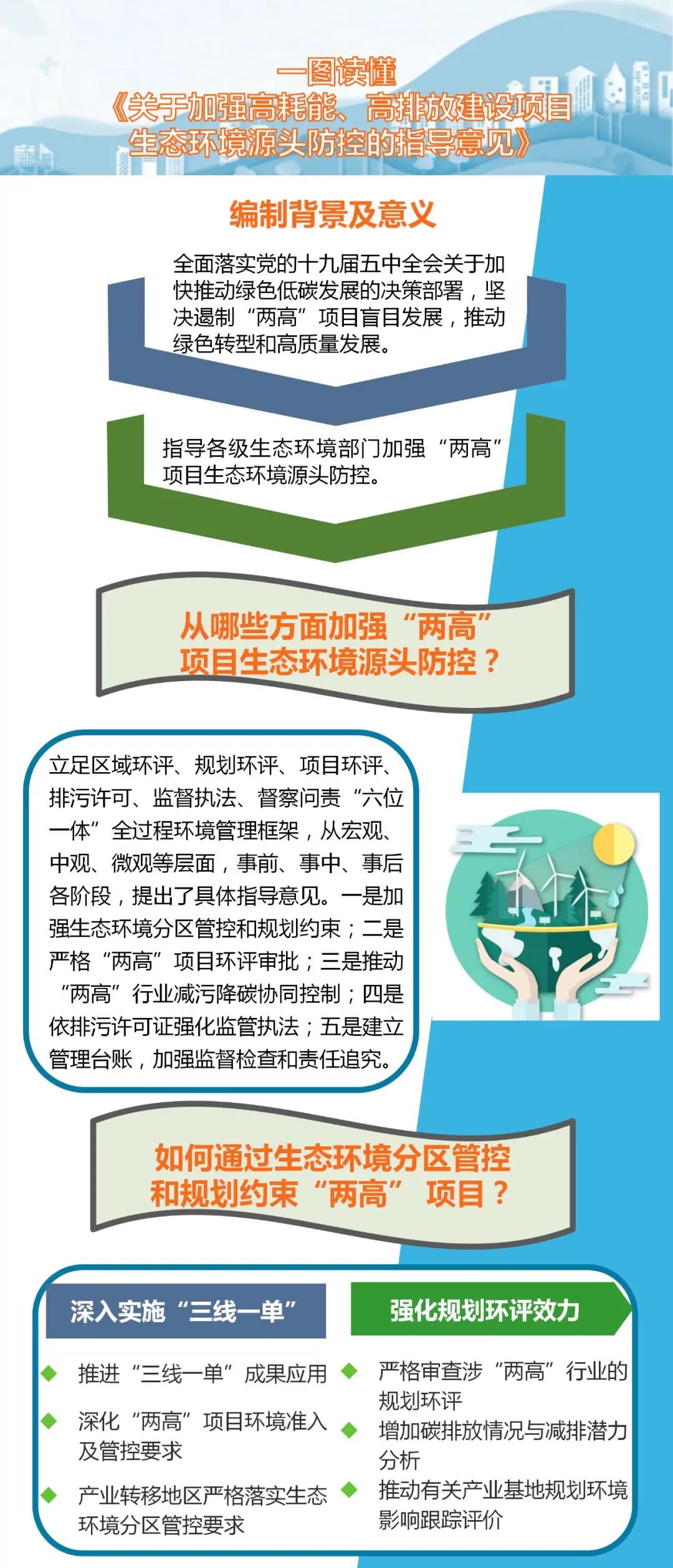 《指導(dǎo)意見》立足區(qū)域環(huán)評、規(guī)劃環(huán)評、項目環(huán)評、排污許可、監(jiān)督執(zhí)法、督察問責(zé)“六位一體”全過程環(huán)境管理框架,明確環(huán)境管理要求,引導(dǎo)“兩高”項目低碳綠色轉(zhuǎn)型發(fā)展。共包括五方面、具體十二部分內(nèi)容。
