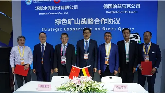 進(jìn)博會(huì)上哈茲馬克與華新水泥簽署綠色礦山戰(zhàn)略合作協(xié)議,哈茲馬克(北京)總經(jīng)理邊漢民與華新水泥(黃石)裝備制造有限公司總經(jīng)理陶守寶代表雙方簽字。雙方此次是在綠色礦山破碎系統(tǒng)和骨料機(jī)制砂生產(chǎn)領(lǐng)域開展合作。華新將在其新礦山系統(tǒng)和新骨料機(jī)制砂項(xiàng)目中優(yōu)先選擇哈茲馬克的