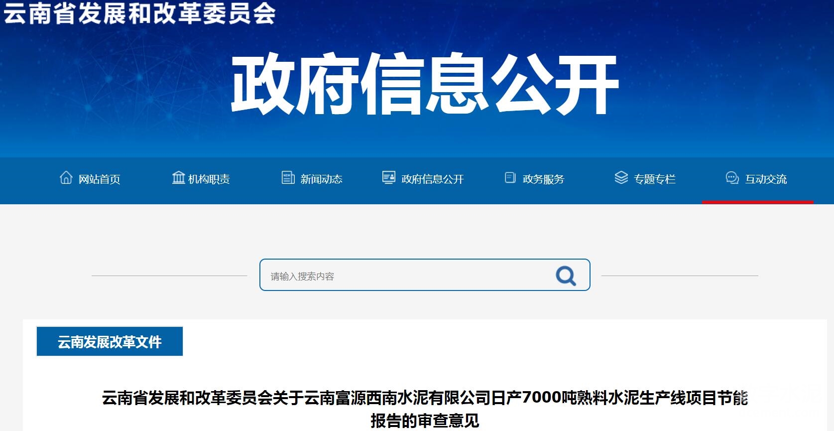 日前,云南發(fā)改委網(wǎng)站給曲靖市發(fā)展和改革委員會(huì)關(guān)于云南富源西南水泥有限公司7000t/d熟料水泥生產(chǎn)線項(xiàng)目節(jié)能報(bào)告的審查意見顯示,原則同意該項(xiàng)目節(jié)能報(bào)告。