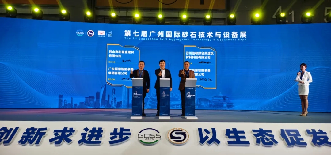 上午9時30分,第七屆廣州國際砂石技術與設備展開幕式隆重舉行,磊蒙集團董事長張宏強作為廣東省砂石分會副會長代表磊蒙參與了本次行業(yè)盛會,與鶴山市利昌盛建材有限公司及四川信敏綠色新建筑材料科技有限公司共同舉行了集中簽約儀式,本次簽約金額高達8000萬元。