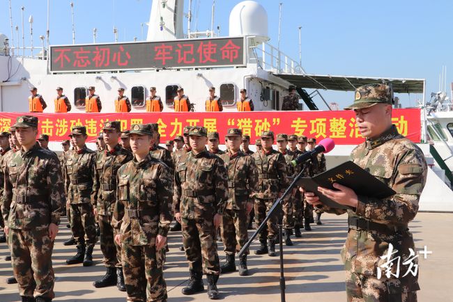 為進(jìn)一步規(guī)范用海秩序,保護(hù)國(guó)家礦產(chǎn)資源開(kāi)發(fā)秩序,全力守護(hù)海洋健康生態(tài)環(huán)境,2021年12月30日,廣東海警局聯(lián)合省公安廳、省生態(tài)環(huán)境廳、省海事局和省海洋綜合執(zhí)法總隊(duì)等涉海單位在深圳舉行“獵砂”專項(xiàng)整治行動(dòng)啟動(dòng)儀式。