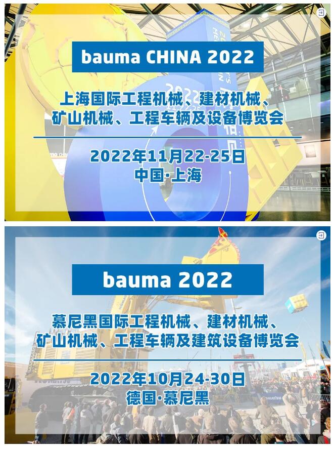 與此同時,三年一屆的全球工程機械行業(yè)重要盛事,德國bauma 2022也將于今年10月24-30日在慕尼黑展覽中心再度舉行。2022年展會將匯聚全球行業(yè)先鋒,在61.4萬平方米的展示面積上傾情呈現(xiàn)與工程機械全產(chǎn)業(yè)鏈相關的創(chuàng)新產(chǎn)品及前沿技術!