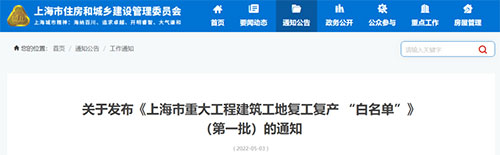 上海市重大工程建筑工地復(fù)工復(fù)產(chǎn)“白名單”