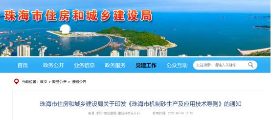 近日,珠海市住建局印發(fā)了《珠海市機(jī)制砂生產(chǎn)及應(yīng)用技術(shù)導(dǎo)則》,自印發(fā)日起開(kāi)始執(zhí)行。
