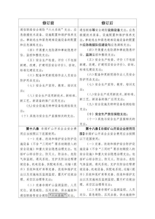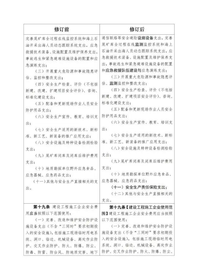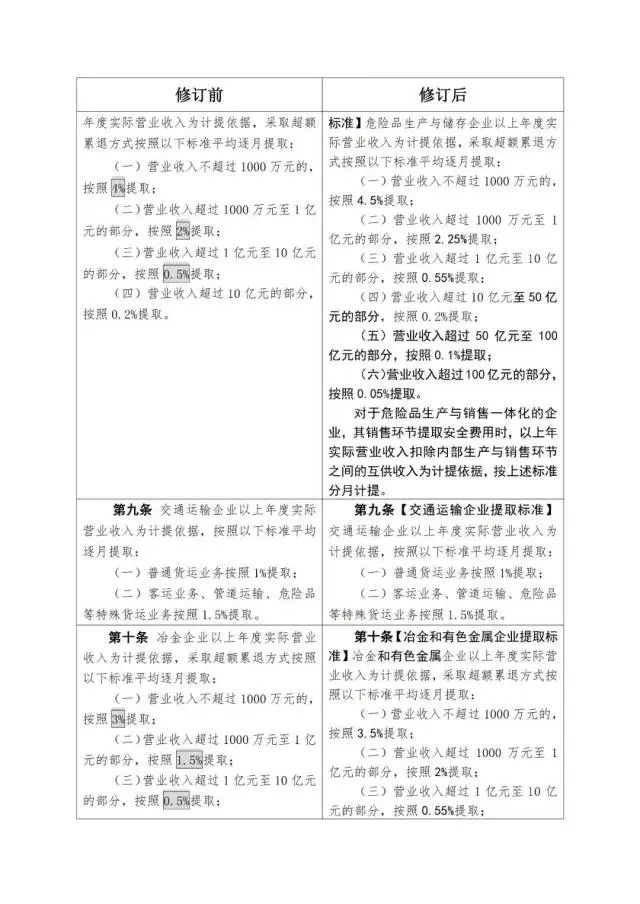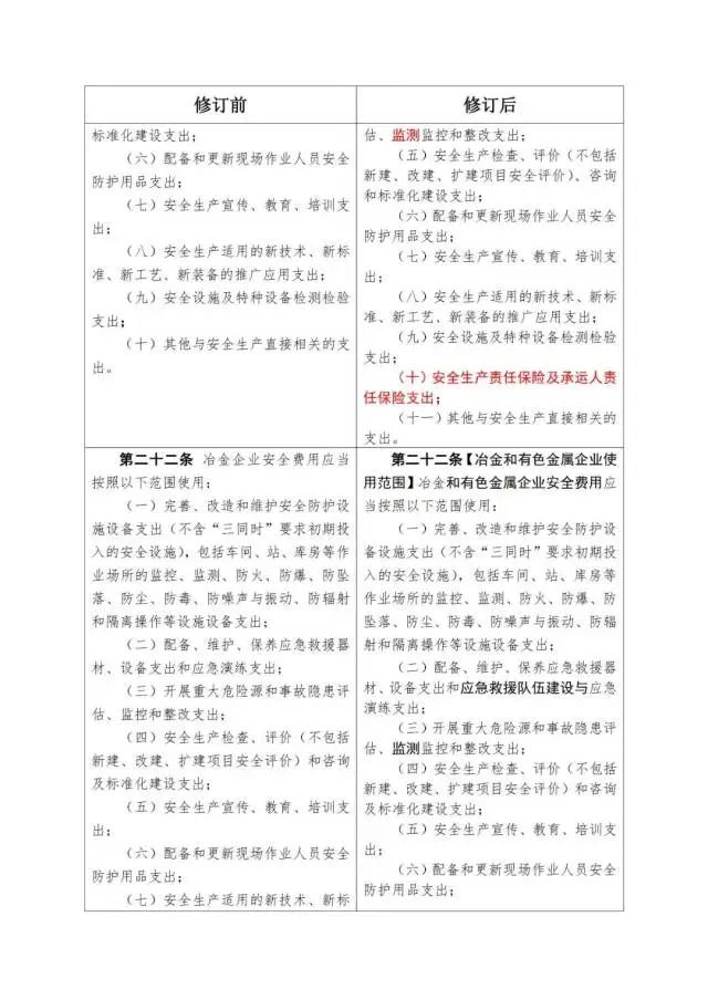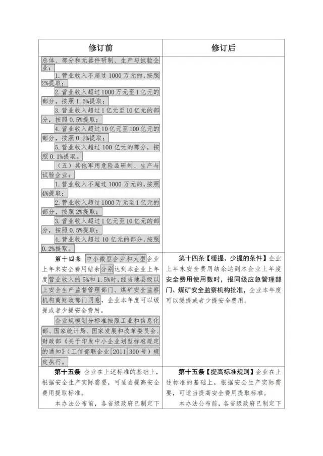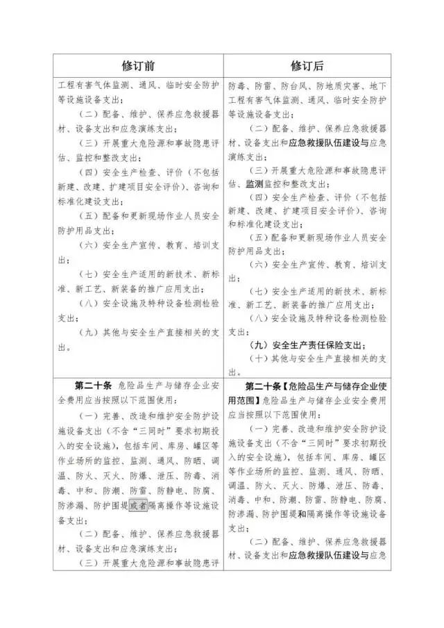 《企業(yè)安全生產(chǎn)費(fèi)用提取和使用管理辦法》修訂對(duì)照表