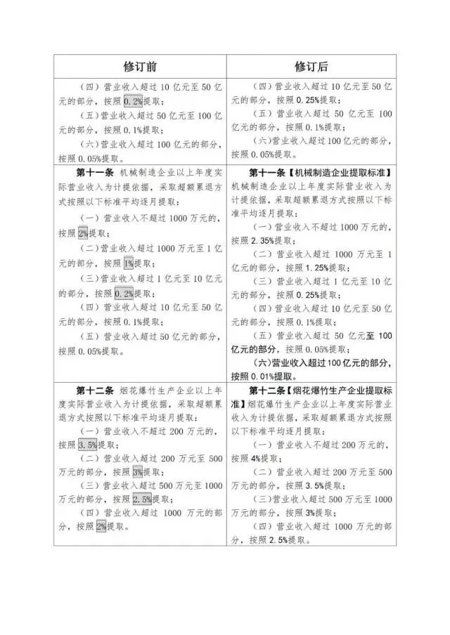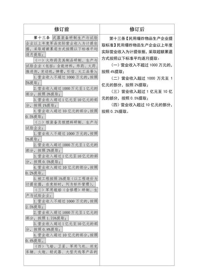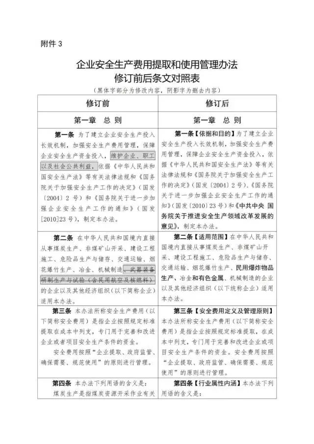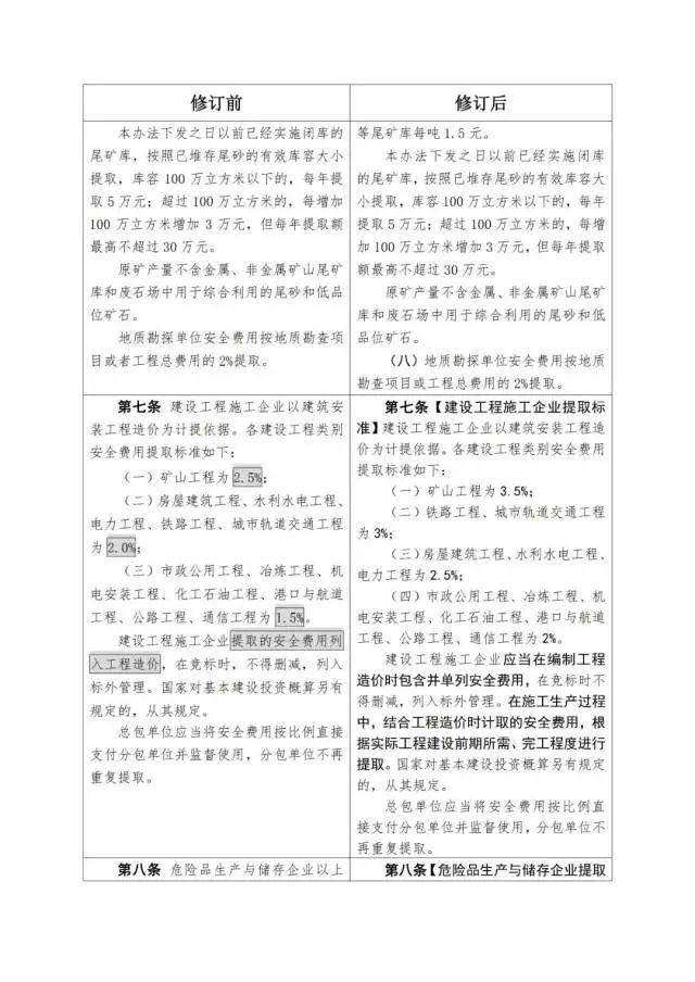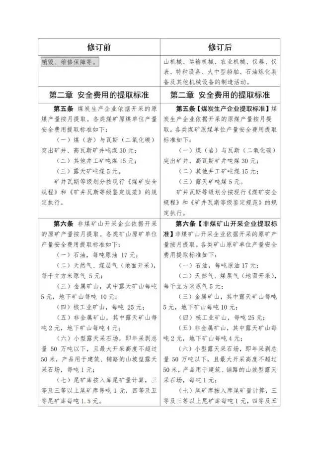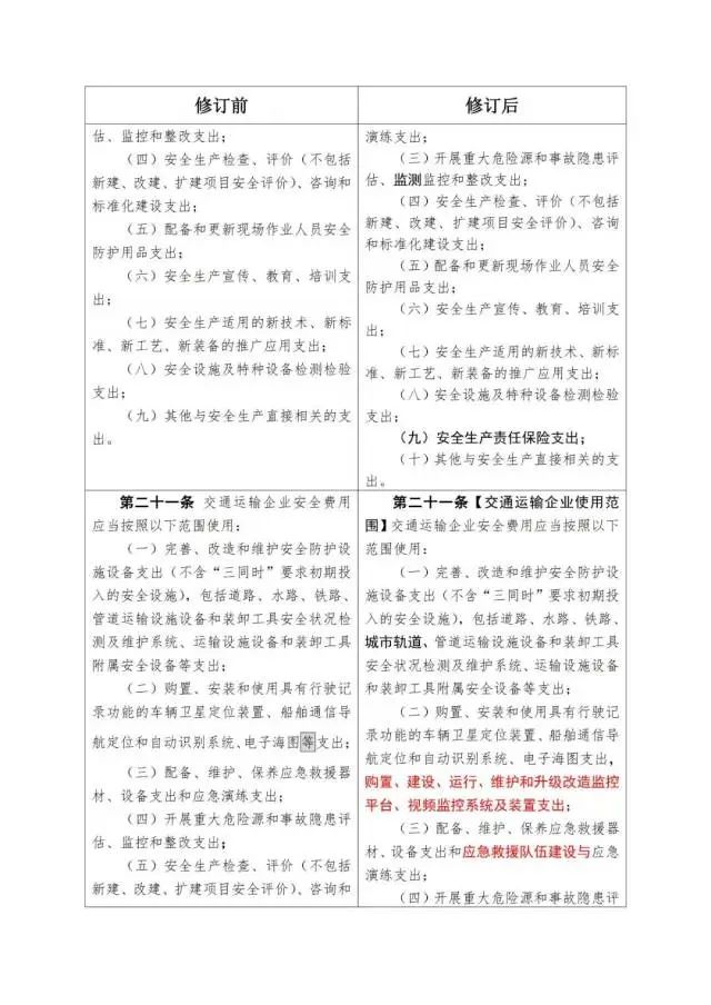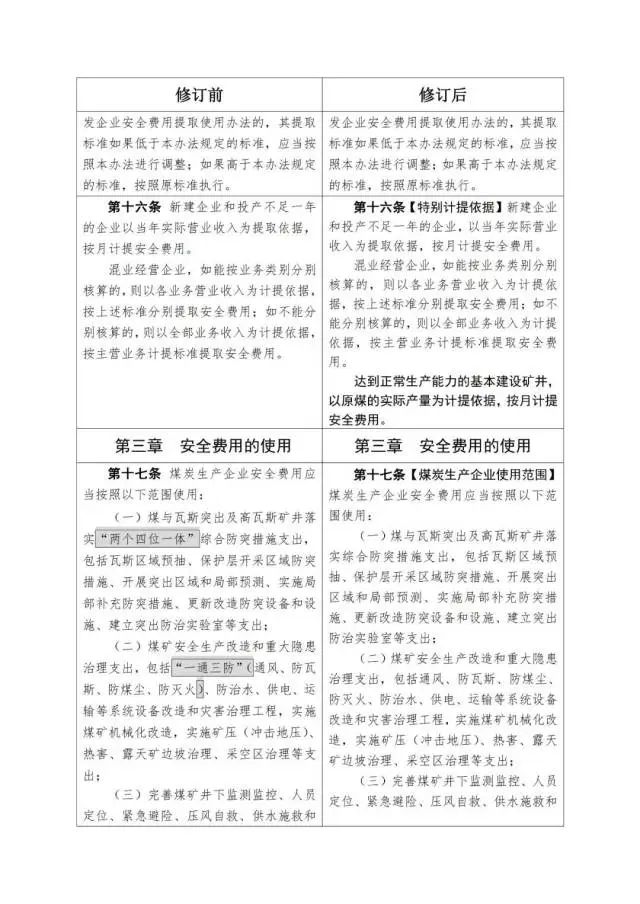 《企業(yè)安全生產(chǎn)費(fèi)用提取和使用管理辦法》修訂對(duì)照表