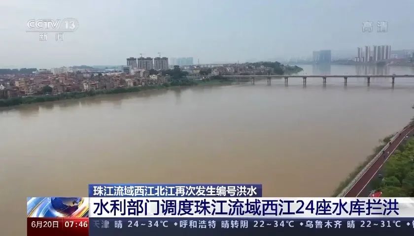 據(jù)水利部通報,受近期降雨影響,珠江流域西江干流廣西梧州站昨天(19日)8時水位漲至20.95米,超過警戒水位2.45米,相應(yīng)流量34500立方米每秒,編號為“西江2022年第4號洪水”;珠江流域北江干流廣東石角站昨天(19日)12時流量漲至12000立方米每秒,編號為“北江2022年第2號洪水”并再次發(fā)展成流域性較大洪水。