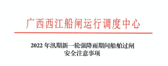 五、西江流域汛期流態(tài)變化較大、流速較急,進出閘船舶應(yīng)謹慎駕駛,加強瞭望,注意避讓,防止船舶偏航、失控漂向大壩泄洪區(qū)。