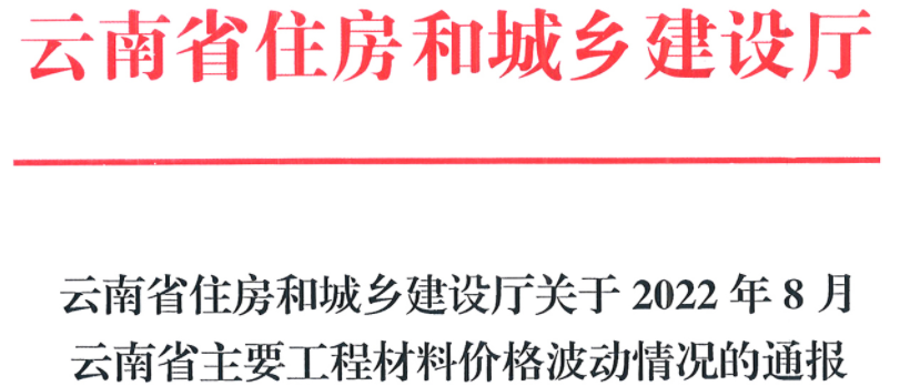 據(jù)了解,近日,云南省住房和城鄉(xiāng)建設(shè)廳發(fā)布關(guān)于2022年8月云南省主要工程材料價格波動情況的通報。其中建筑用砂、建筑用石、水泥、商品混凝土價格指數(shù)均有不同程度下降。