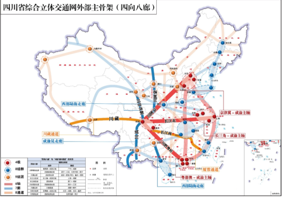 同時,推動交通樞紐和鐵路集疏運(yùn)網(wǎng)絡(luò)同步規(guī)劃、設(shè)計、建設(shè)和運(yùn)營,構(gòu)建以成都、重慶、貴陽為主樞紐,宜賓、遂寧、廣元等為次級樞紐的“3+11”現(xiàn)代化綜合交通樞紐集群,并按照站城一體化思路,積極推行TOD發(fā)展模式,建成投用成都天府站、重慶東站等大體量客站,做到高鐵、地鐵、公交等便捷換乘。在四川,對外,將進(jìn)一步打通出川大通道,加快推進(jìn)成渝中線高鐵、成達(dá)萬高鐵、西渝、渝昆高鐵等時速350公里項(xiàng)目建設(shè),新增2000余公里鐵路里程,提高東、南、北三向出川通道能級,形成成都至北京、上海全程時速350公里高鐵大通道,助力四川跨入全國高鐵“第一梯隊”。對內(nèi),將加快推進(jìn)城市群交通一體化建設(shè), 爭取在未來五年建成漢巴南鐵路、成都至自貢至宜賓高鐵,有序推進(jìn)成德眉市域鐵路建設(shè),做好綿遂內(nèi)城際鐵路、南充至廣安鐵路前期工作,爭取瀘州至遵義高鐵納入國家規(guī)劃,構(gòu)建完善四川省域現(xiàn)代化鐵路網(wǎng),推進(jìn)四川鐵路運(yùn)輸布局和能力進(jìn)一步優(yōu)化升級。