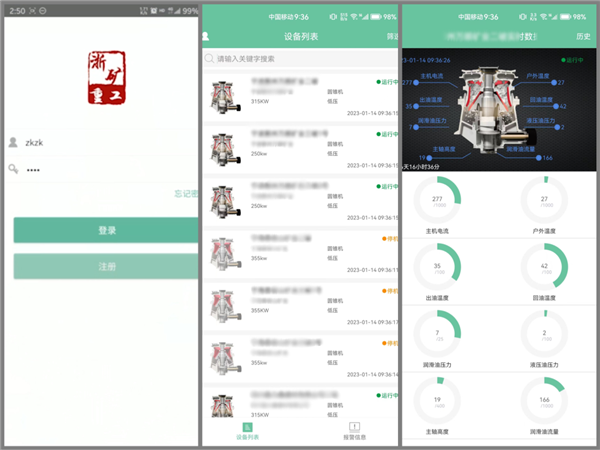 浙礦重工董事長(zhǎng)陳利華表示,為客戶打造智能工業(yè)世界,開啟人機(jī)互動(dòng)新征途,公司還開發(fā)了手機(jī)APP設(shè)備管理系統(tǒng)。該系統(tǒng)采用賬戶式登陸管理,可以有效保障數(shù)據(jù)安全。“實(shí)時(shí)數(shù)據(jù)”管理功能時(shí)刻提供設(shè)備能耗、易損件磨損度、產(chǎn)量、負(fù)載等關(guān)鍵性指標(biāo),同時(shí)對(duì)工礦外部環(huán)境進(jìn)行檢測(cè),可以有效預(yù)防和減少各類損耗,大幅度提高產(chǎn)能。