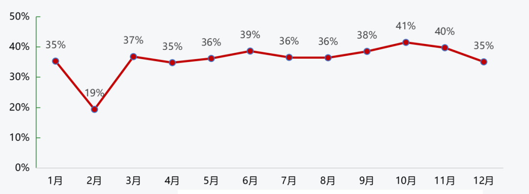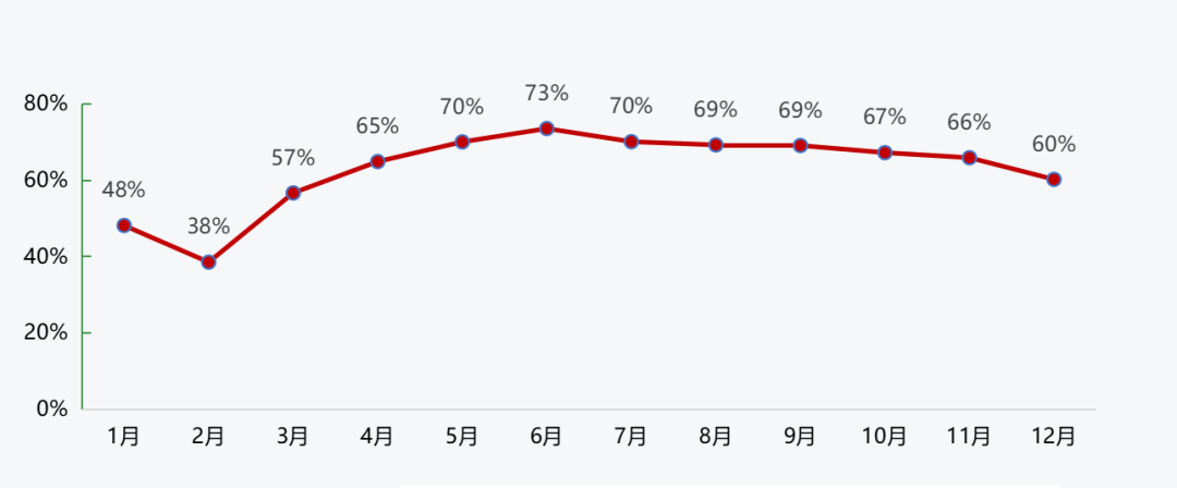 2022年砂石企業(yè)開機率和產(chǎn)能利用率走勢較為一致,均在年初、年尾出現(xiàn)回落,年中保持較高水平。一季度,受春節(jié)假期、雨雪天氣等影響,開機率、產(chǎn)能利用率均較低,2月更是分別降至38%、19%;二季度疫情逐漸緩解,三季度工程旺季到來,二、三季度開機率、產(chǎn)能利用率均保持較高水平,6月更是達到了年度最高水平,分別升至73%、39%;進入四季度,受到雨雪天氣到來以及疫情的反復,雙重因素的影響導致開機率、產(chǎn)能利用率均出現(xiàn)回落,12月,分別降至60%、35%。