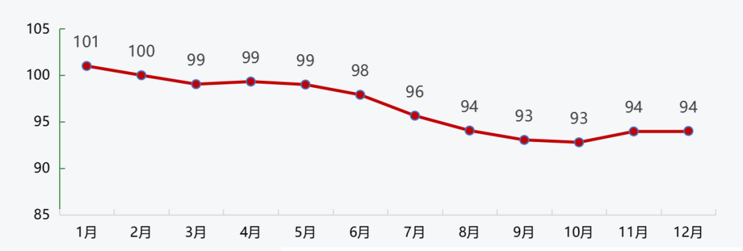 2022年12月,碎石均價94元/噸,12月同比下跌7.9%。