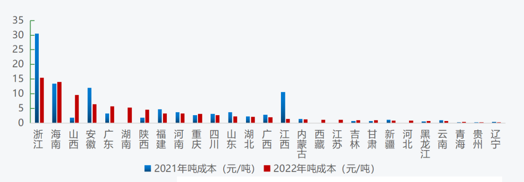 新增砂石礦權出讓成交價方面,浙江、海南新設砂石采礦權出讓成交價分別為15.5元/噸、14.0元/噸,價格居全國前兩位,同比分別下跌49%、上漲4%,而遼寧、貴州等9省新設砂石采礦權出讓成交價在1元/噸以內(nèi)。