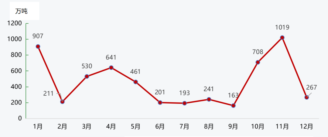 根據(jù)對重點砂石企業(yè)監(jiān)測顯示,重點砂石企業(yè)在四季度日均出貨量高位運行,其他時間均保持低位。一季度,春節(jié)假期,砂石礦山廠停工,疊加需求不足等因素,重點砂石企業(yè)日均出貨量低位運行;二季度,隨著疫情的好轉(zhuǎn),砂石運輸條件的改善,重點砂石企業(yè)日均出貨量有所回升,4月升至641萬噸/日;三季度,疫情反復、施工項目進度緩慢影響砂石需求,重點砂石企業(yè)日均出貨量持續(xù)回落,9月降至163萬噸/日;四季度,隨著工程旺季的到來,砂石需求回升,重點砂石企業(yè)日均出貨量達到年度最高值,11月達到了1019萬噸/日。