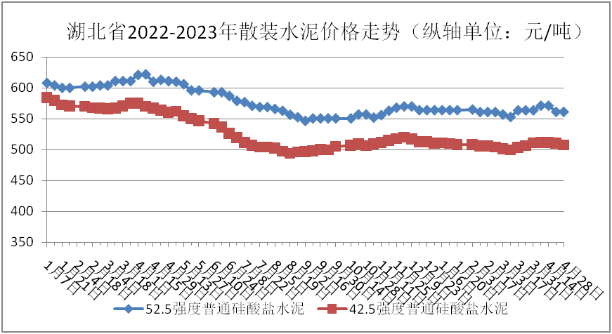 監(jiān)測數(shù)據(jù)顯示:4月份,42.5強度普通硅酸鹽水泥、42.5強度
