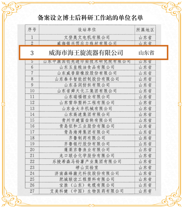 近日,國家人力資源社會保障部、全國博士后管理委員會辦公室發(fā)布《關于開展2022年博士后科研工作站新設站工作的通知》,威海市海王旋流器有限公司榜上有名,成功獲批為國家級博士后科研工作站,標志海王公司在高層次人才聯(lián)合培養(yǎng)、科研平臺建設上取得重大突破。