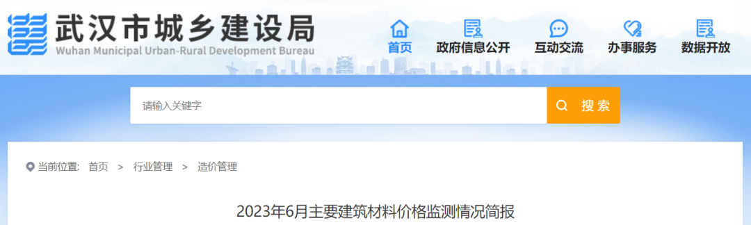 市標(biāo)準(zhǔn)定額管理站于6月30日發(fā)布了2023年6月武漢市建設(shè)工程常用建筑材料綜合價(jià)格信息,相關(guān)信息已在市城建局官網(wǎng)上公布。