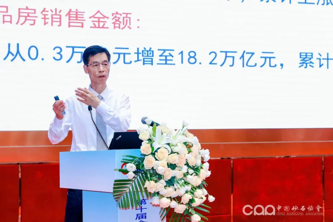 中國砂石協(xié)會(huì)副會(huì)長、專家委員會(huì)主任宋少民主持中國砂石協(xié)會(huì)會(huì)長胡幼奕作題為《當(dāng)前經(jīng)濟(jì)形勢(shì)和砂石供應(yīng)的高質(zhì)量發(fā)展》的主旨報(bào)告。