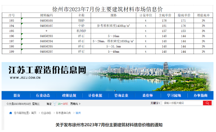 關(guān)于發(fā)布徐州市2023年7月份主要建筑材料信息價(jià)格通知