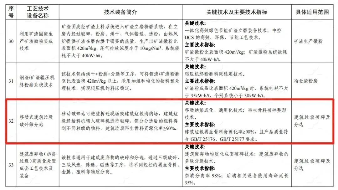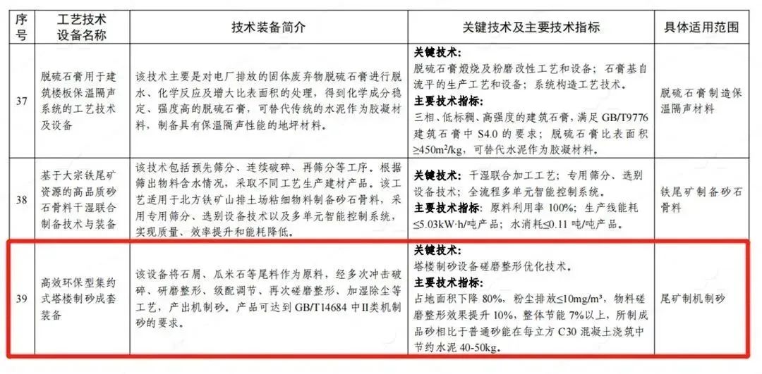 建筑垃圾破碎篩分站、高效環(huán)保型集約式塔樓制砂成套裝備”兩項(xiàng)技術(shù)裝備成功入選《國家工業(yè)資源綜合利用先進(jìn)適用工藝技術(shù)設(shè)備目錄(2023年版)》。